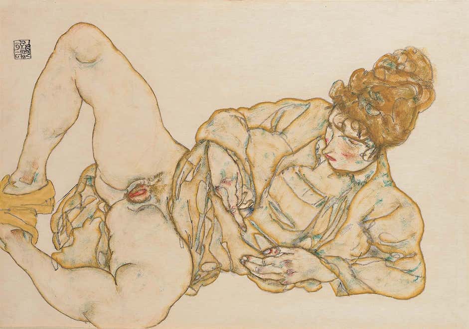 Algunos de los desnudos de Schiele fueron tachados de inmorales (y en consecuencia, prohibidos). No cabe refutar la acusación afirmando que se trata de erotismo y no de pornografía: Schiele no pintaba para bienpensantes. En esas figuras femeninas que exhiben su sexo sin recato alguno, y en la representación de éste, no mediante un detallado inventario de sus partes (vello púbico, clítoris, vulva, grandes y pequeños labios, como en ciertos violentísimos dibujos de Rembrandt y de Picasso), sino merced a una mancha negra, profunda y sin límites definidos en el centro del lienzo que configura una imagen de pregnancia casi intolerable, se materializa con una crudeza como nunca antes se haya ofrecido el terror del varón ante la mujer, ante el enigma de su cuerpo fértil (es decir, inabarcable) y su sexualidad multiforme y misteriosa.